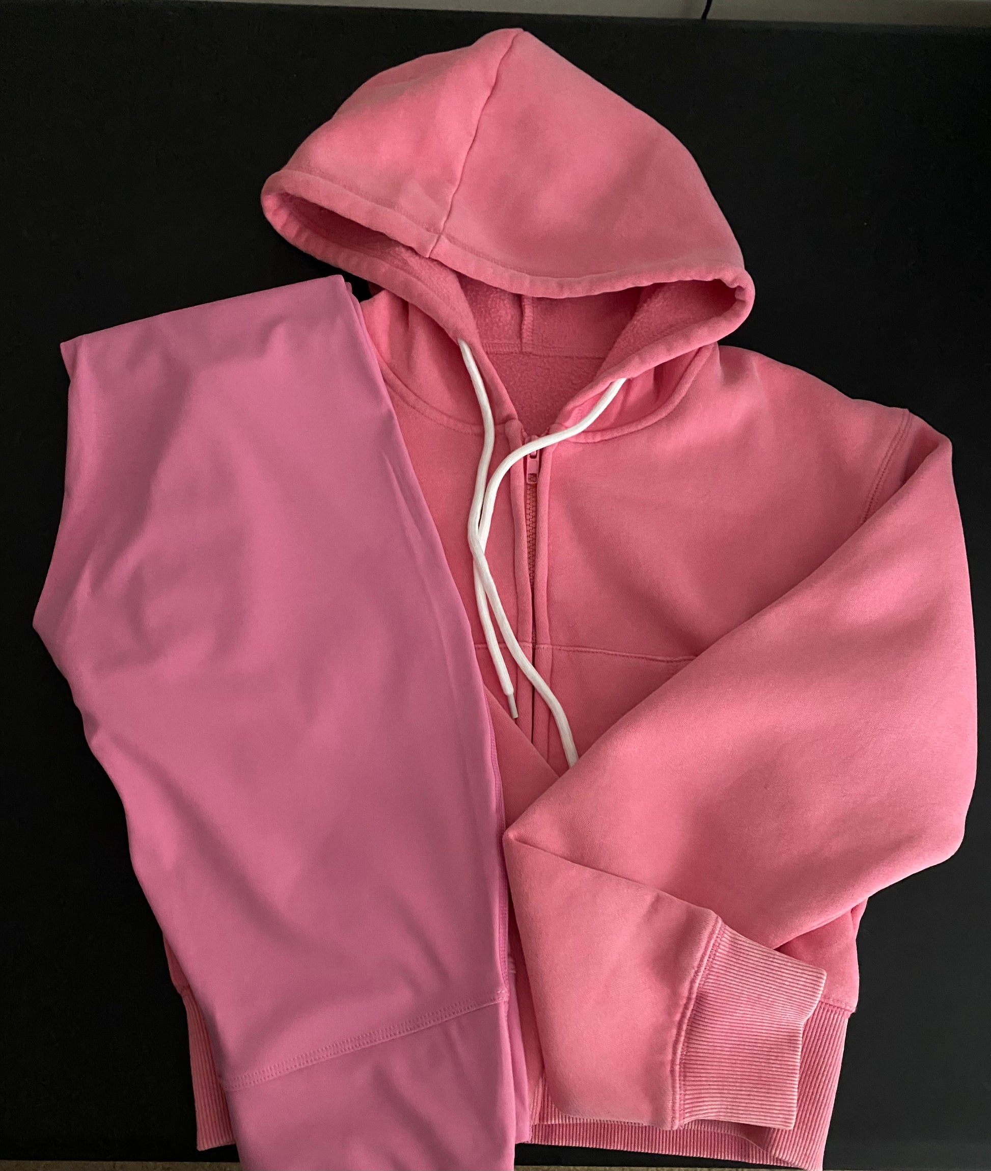 Experience ultimate comfort and style with our Women's 2-Piece Fleece Jacket and Leggings Set! Made with high quality materials, this set includes an acid washed jacket and solid leggings. The jacket is fleece lined for maximum softness and warmth. With a long sleeve zipper hoodie and available in sizes S-2XL, this set fits true to size for your perfect fit!